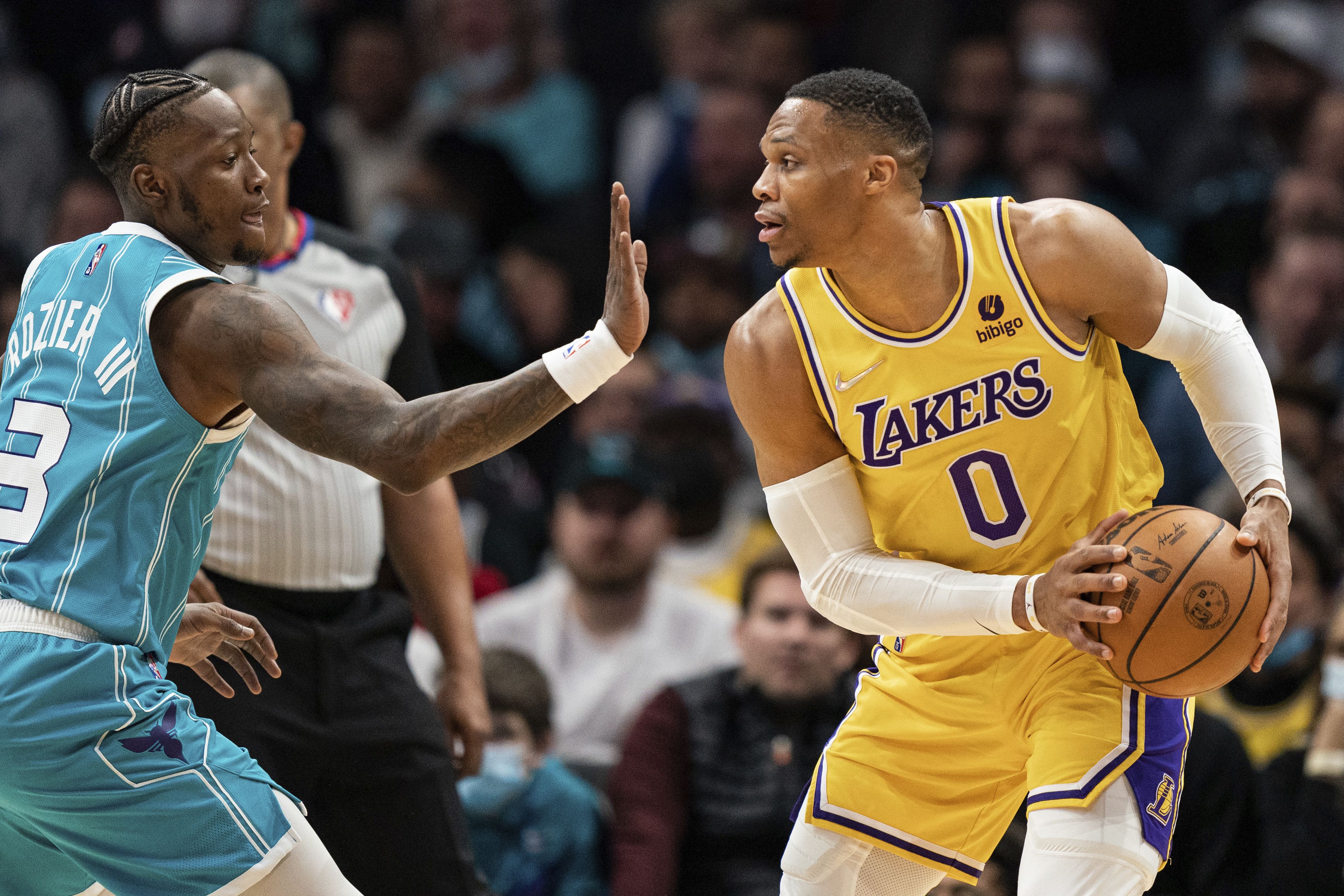 So the Lakers have limited options, either they trade him, buy him out or release him. There have been rumors swirling about a potential deal with the Charlotte Hornets (as well as the Indiana Pacers reported originally here by Dan Woike and Brad Turner of the L.A. Times), where the Lakers could potentially get a couple of pieces back for Westbrook and one or both of the Lakers’ first-round picks. The Hornets would be looking to get off the contracts of some combination of Gordon Hayward, Terry Rozier, and Kelly Oubre, Jr., however, according to Marc Stein, the Lakers would prefer a package around Rozier rather than Hayward.